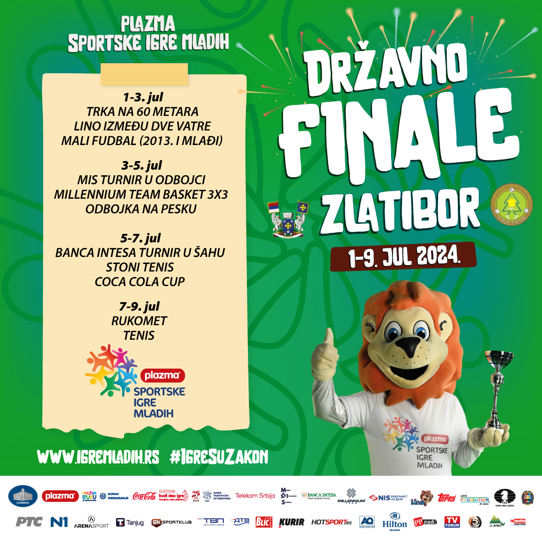 Plazma Sportske igre mladih u Srbiji ulaze u završnicu takmičenja. Veliko Državno finale održaće se na sportskim terenima na Zlatiboru, izuzev finala odbojke na pesku koja će biti organizovana u Novoj Varoši.