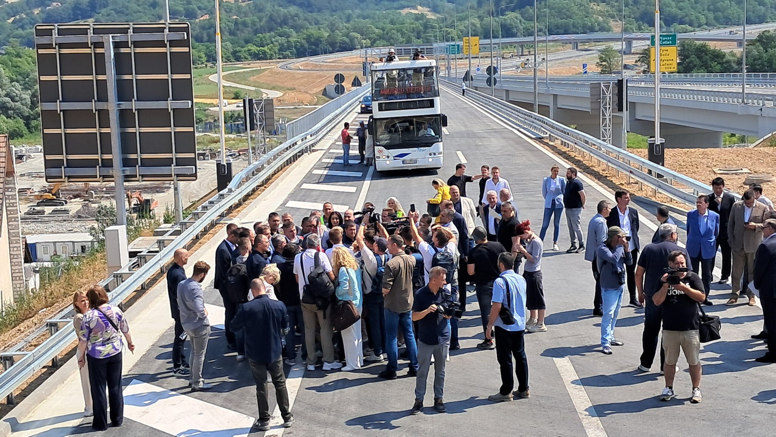Predsednik je sa saradnicima i novinarima prošao deonicu otvorenim autobusom, ističući da je u prethodnih nekoliko godina izgrađeno više autoputeva i brzih saobraćajnica nego u prethodnih sedam decenija.