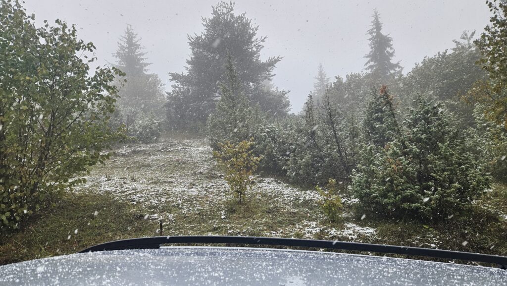 Prijepolje – Prve pahulje pale su u prijepoljskom kraju na planini Jabuci koja se nalazi na nadmorskoj visini od 1250 mnv.