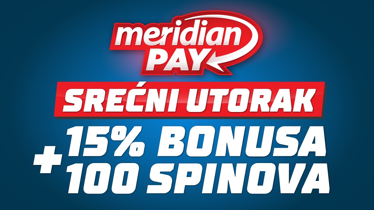 Bonus utorkom uvek je dobrodošao – sve što treba da uradiš je da preko Meridian Pay-a uplatiš depozit na Meridian korisnički nalog i odmah dobijaš čak 15% bonusa za sportsko klađenje i 100 poklon spinova na video slotu Scopa!