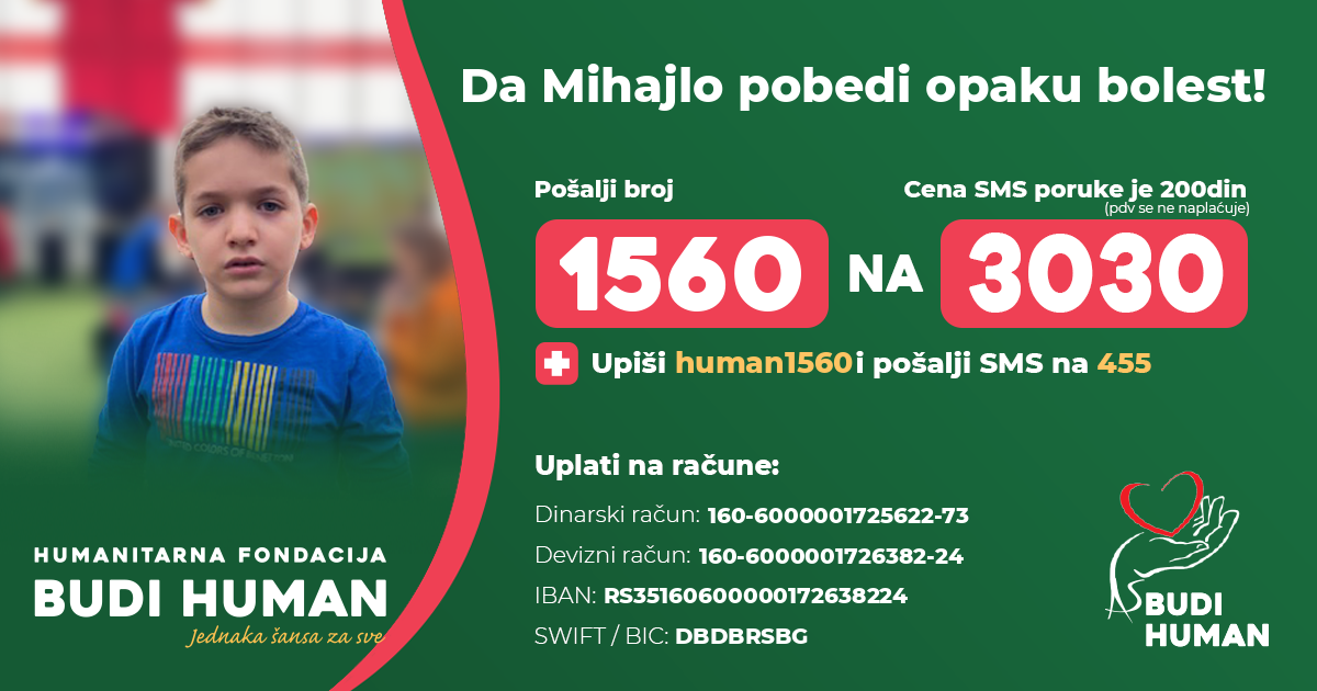 Ova akcija ima za cilj da pomogne malom Mihajlu Oreščaninu kome je nedavno dijagnostikovan zloćudni tumor malog mozga.