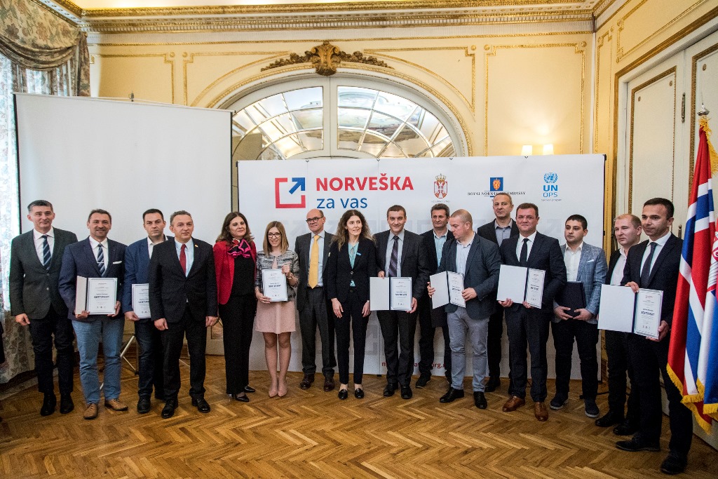 Svečanim uručenjem sertifikata o dodeli bespovratnih sredstava Kraljevine Norveške predstavnicima lokalnih samouprava, otpočelo je sprovođenje projekata vrednih 840.000 evra za unapređenja infrastrukture i stručnih obuka u skladu sa lokalnim akcionim planovima za zapošljavanje, u okviru projekta „Norveška za vas – Srbija“.